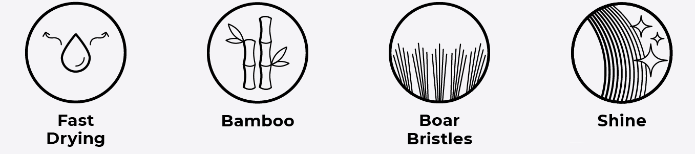 Щетина, опрацьована до дрібниць. Натуральна щетина дбайливо впливає на волосся і шкіру голови. Вона полірує волосся надаючи йому натуральний блиск!