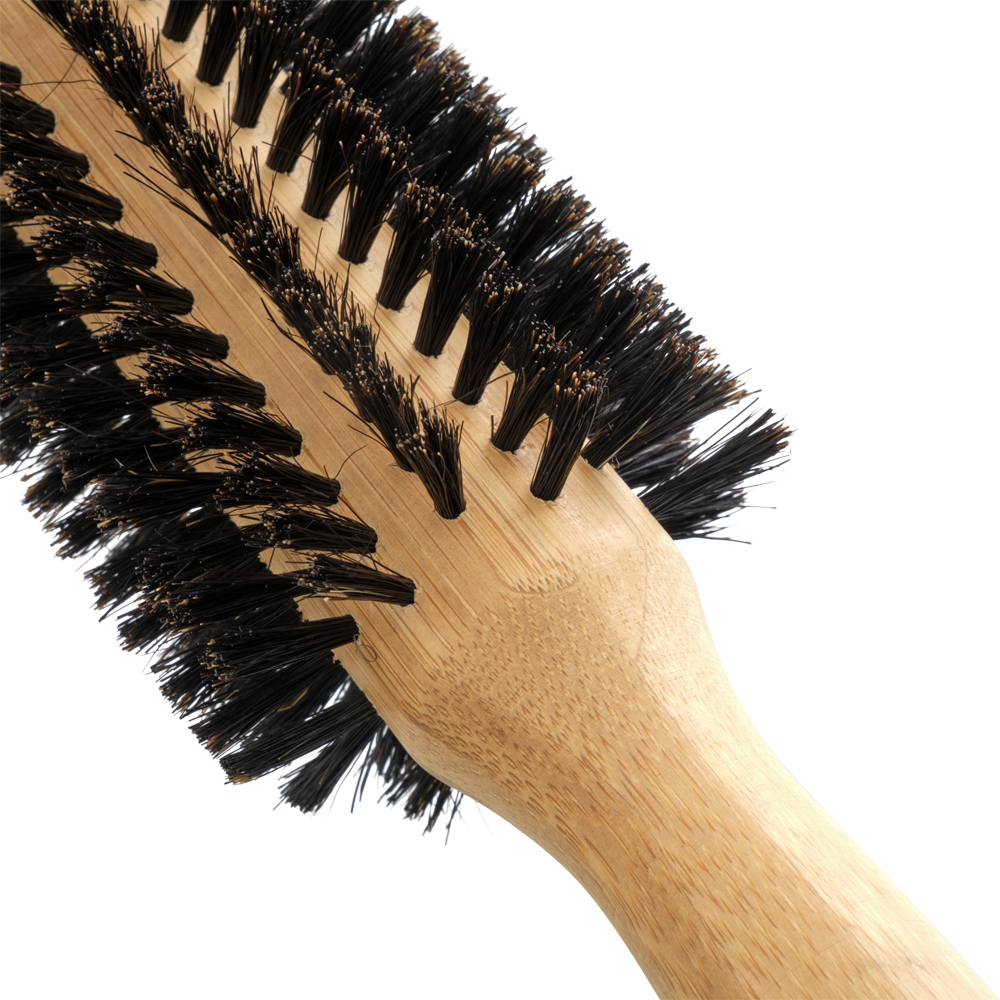 Розроблена для волосся середньої довжини, ця щітка розгладжує волосся, додає об'єму та блиску завдяки щетині кабана. Бамбукова ручка, сертифікована FSC, забезпечує гладкий, природний дотик. Незалежно від того, чи формуєте м'які хвилі, чи надаєте контроль, ця щітка чудово поєднує гладкість та рухливість.