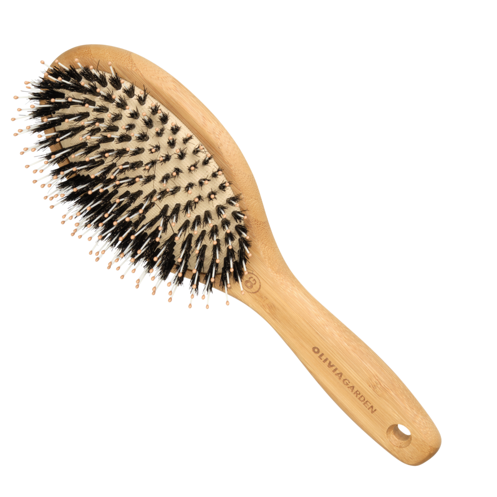 Поєднання щетинок кабана та нейлону плавно розплутує, одночасно підсилюючи природний блиск для гладкого вигляду. Ця щітка, ідеально підходить для волосся середньої та довгої довжини, делікатно розгладжує волосся, підходить для розподілення олій для здорового вигляду волосся. Бамбукова ручка, сертифікована FSC, забезпечує м’яке, природне відчуття для легкого укладання.