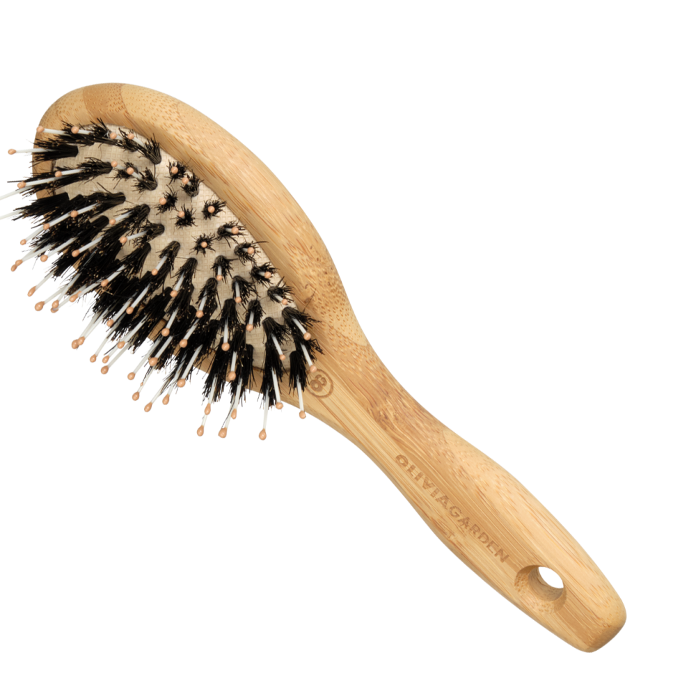 Поєднання натуральної щетини кабана та нейлону делікатно розплутує вузлики та рівномірно розподілить натуральні олії для гладкості. Компактний розмір ідеально підходить для корекції волосся або укладання короткого волосся в дорозі. Бамбукова ручка, сертифікована FSC, забезпечує природне відчуття, роблячи розплутування легким та дбайливим до всіх типів волосся.
