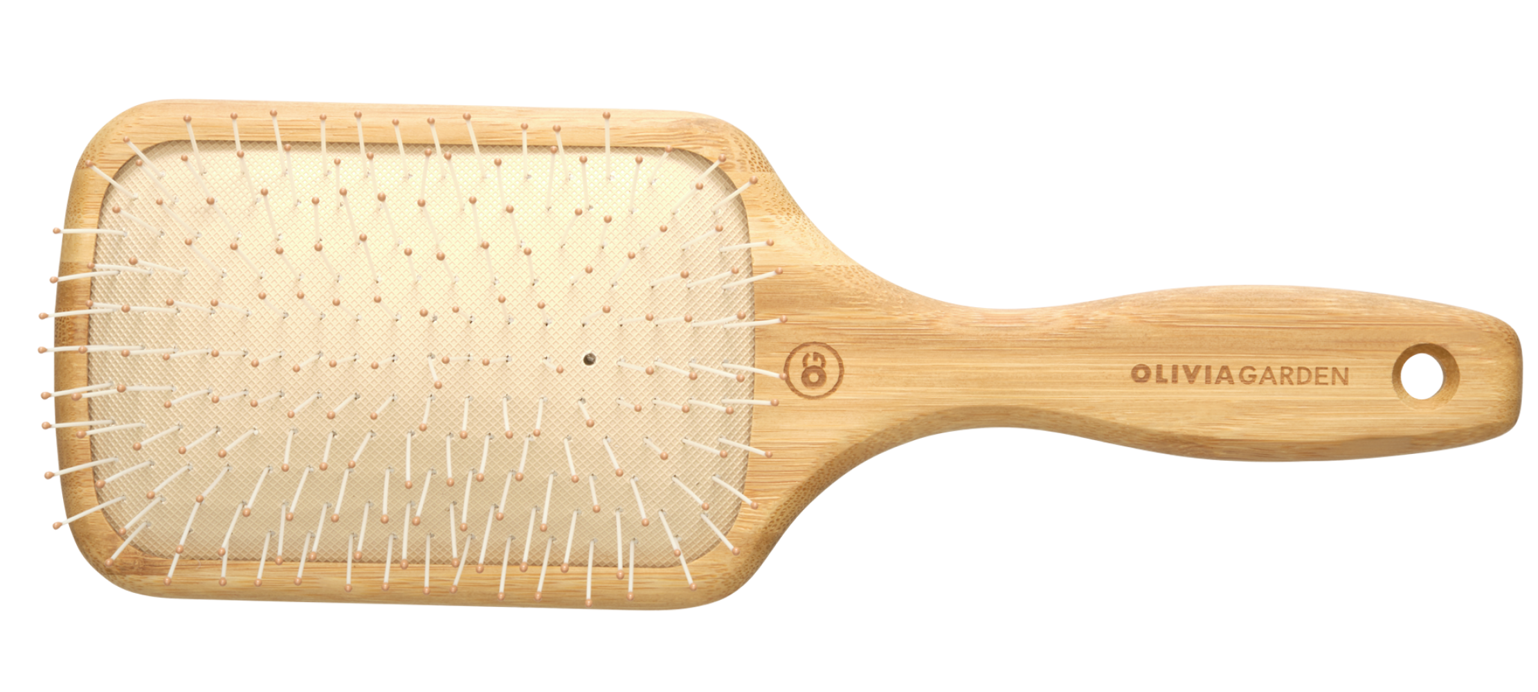 Нейлонова щетина, опрацьована до дрібниць. Нейлонові зубці ретельно закруглені на кінцях, щоб запобігти пошкодженню структури волосся або шкіри голови. Торкаючись до шкіри і коріння, м'які щетинки масажують їх, покращуючи кровопостачання. Зручна подушечка забезпечує плавне ковзання та також заспокійливий масаж шкіри голови