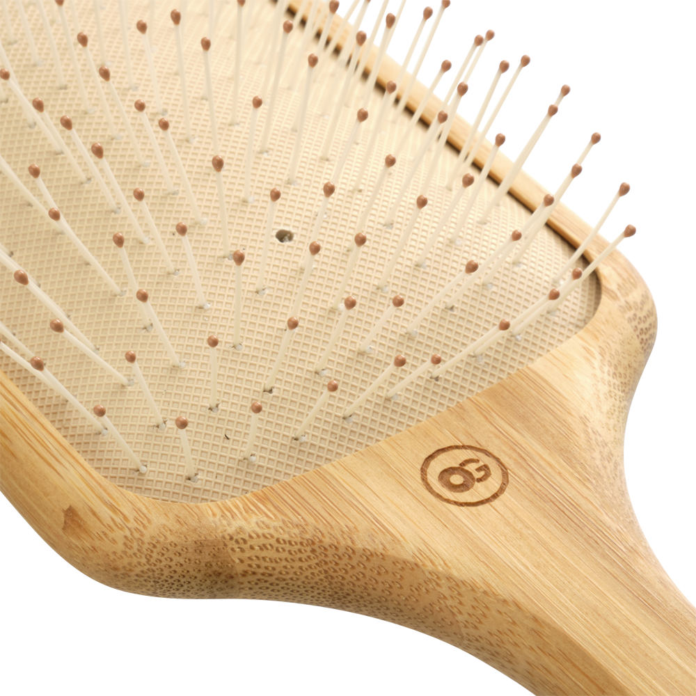 Гнучка нейлонова щетина ковзає по волоссю, забезпечуючи швидке та безстресове розплутування. Ідеально підходить для довгого волосся, охоплюючи більшу площу з кожним рухом. Незалежно від того, чи використовується вона на вологому, чи на сухому волоссі, ця щітка забезпечує гладке та безперешкодне розчісування. Бамбукова ручка, сертифікована FSC, забезпечує природне та комфортне відчуття, роблячи укладання легкою та приємною частиною будь-якого розпорядку.