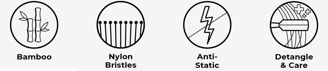 М’які нейлонові щетинки ковзають по вузликах волосся, забезпечуючи легке та гладке розплутування для всіх типів волосся. Розроблена для точного та зручного використання в подорожах, ця щітка ідеально підходить для швидкого укладання. Бамбукова ручка, сертифікована FSC, забезпечує природне, гладке відчуття, забезпечуючи комфортне розчісування.