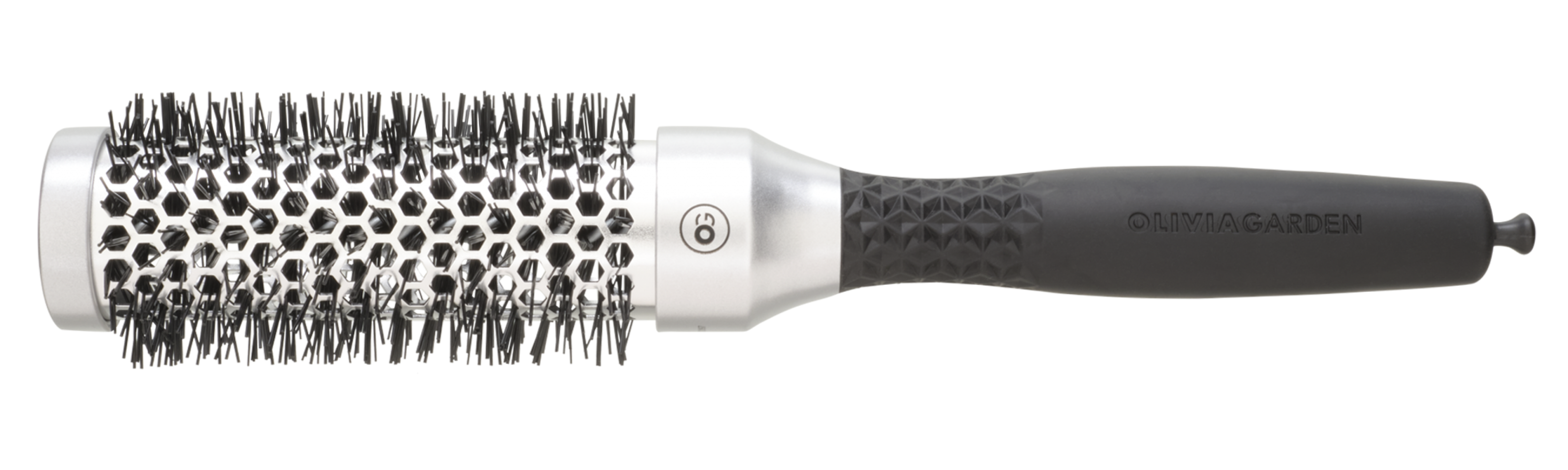 Бочка щітки Olivia Garden оснащена збільшеними отворами. Вони забезпечують надходження більшого обсягу повітря, скорочують час висихання волосся і укладки. Корпус брашинга виготовлений з алюмінію, який швидше нагрівається, що теж дозволяє прискорити укладку.