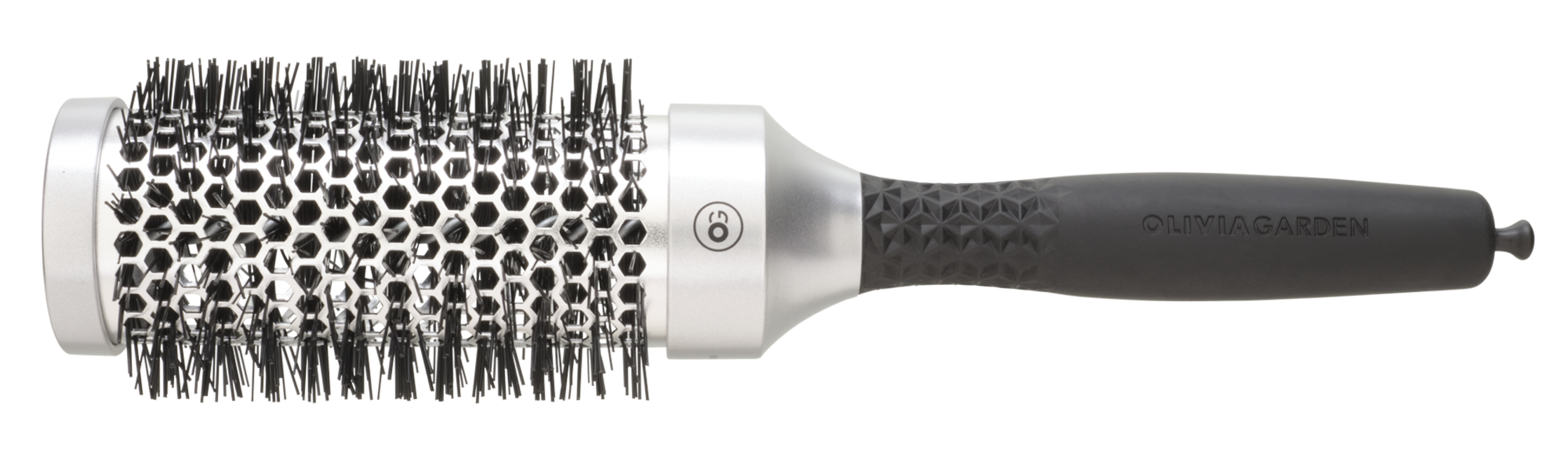 Бочка щітки Olivia Garden оснащена збільшеними отворами. Вони забезпечують надходження більшого обсягу повітря, скорочують час висихання волосся і укладки. Корпус брашинга виготовлений з алюмінію, який швидше нагрівається, що теж дозволяє прискорити укладку.