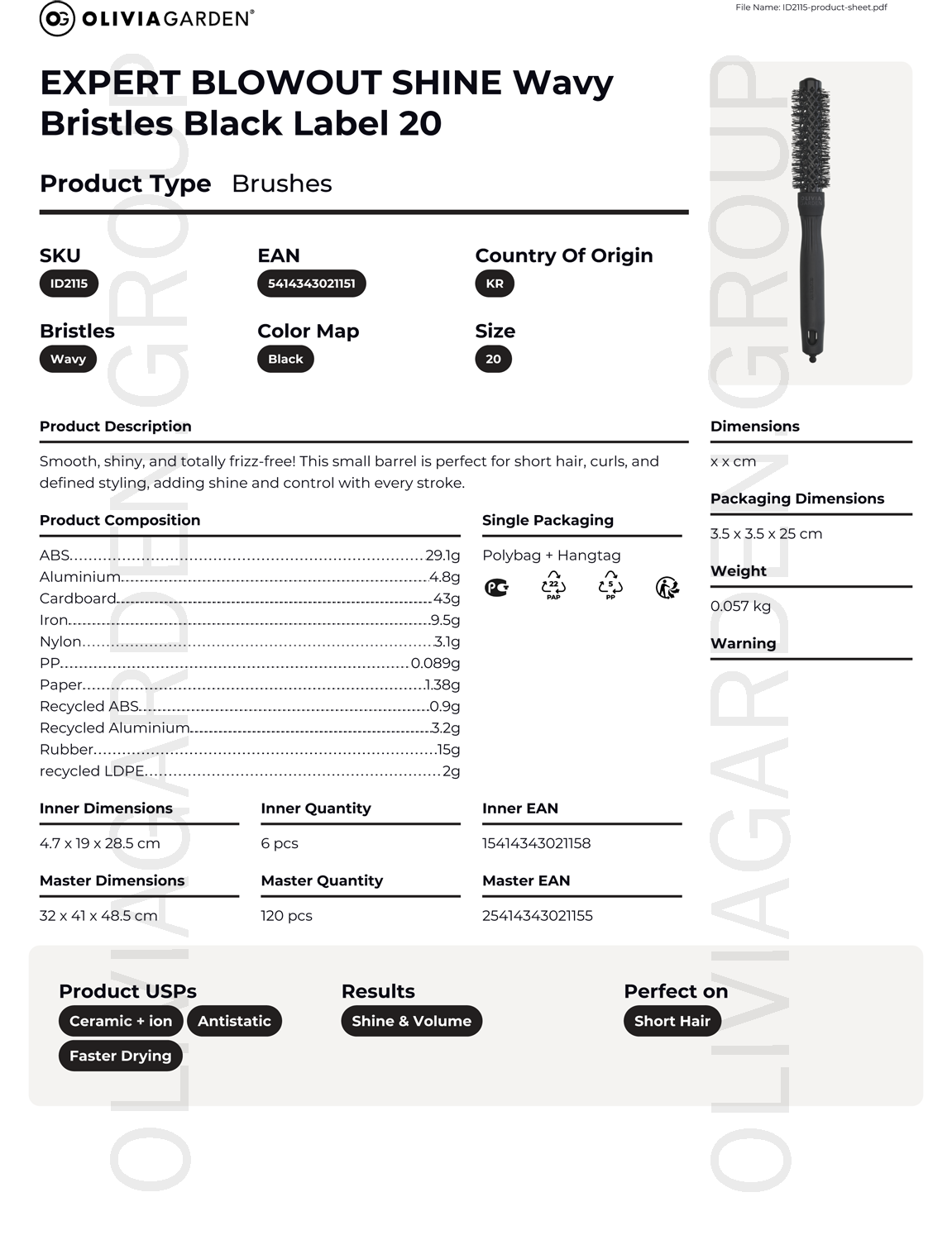 З діаметром 20 мм термобрашинг ідеально підходить для створення легкого об'єму та локонів, дозволяючи експериментувати з виразністю локонів, особливо для короткого волосся.