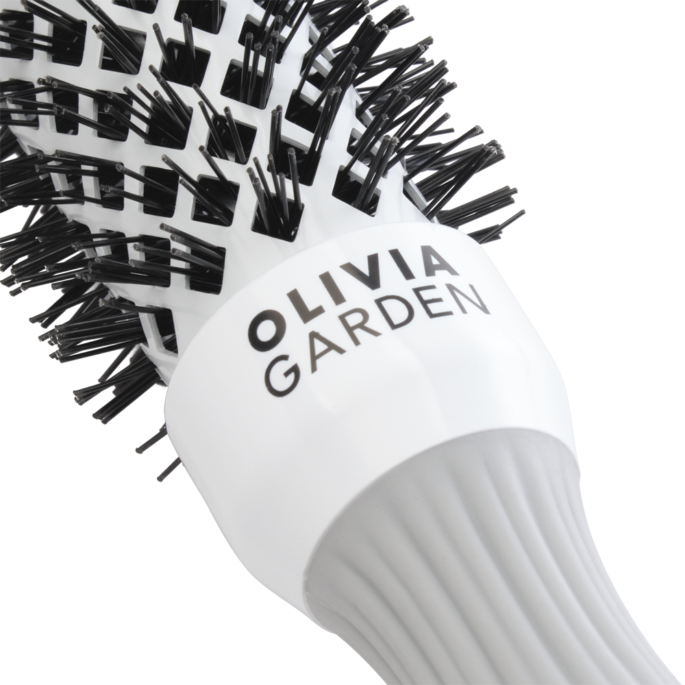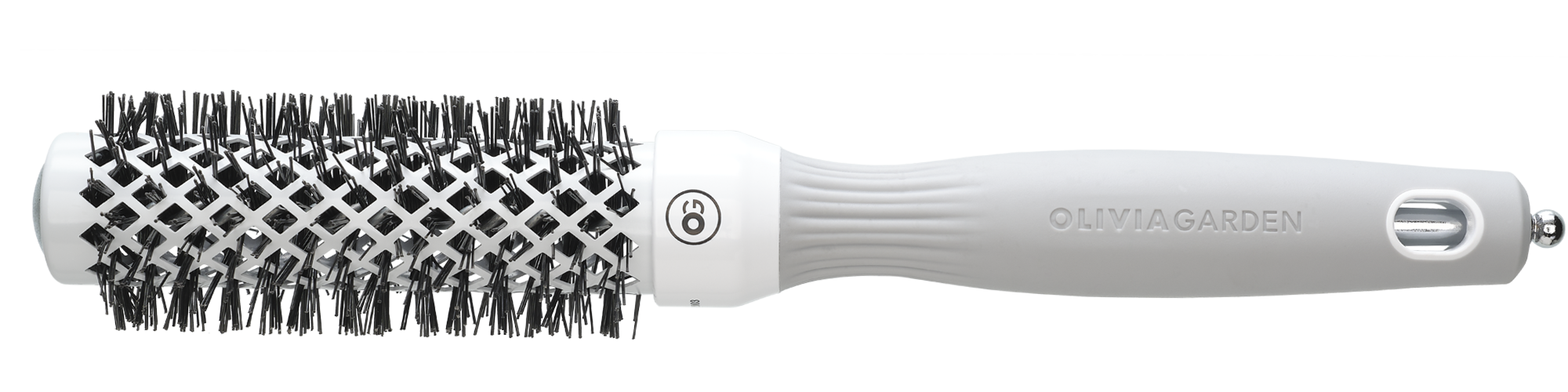 Завдяки напиленню іонізації на керамічному покритті термобрашинга Olivia Garden Ceramic + ion, під час укладки закриваються кутикули кожного волоска, що захищає волосся від пересихання. Більш того, взаємодія з іонізованим покриттям сприяє зволоженню волосся, воно стає більш доглянутим, набуває блиску і здорового сяйва.