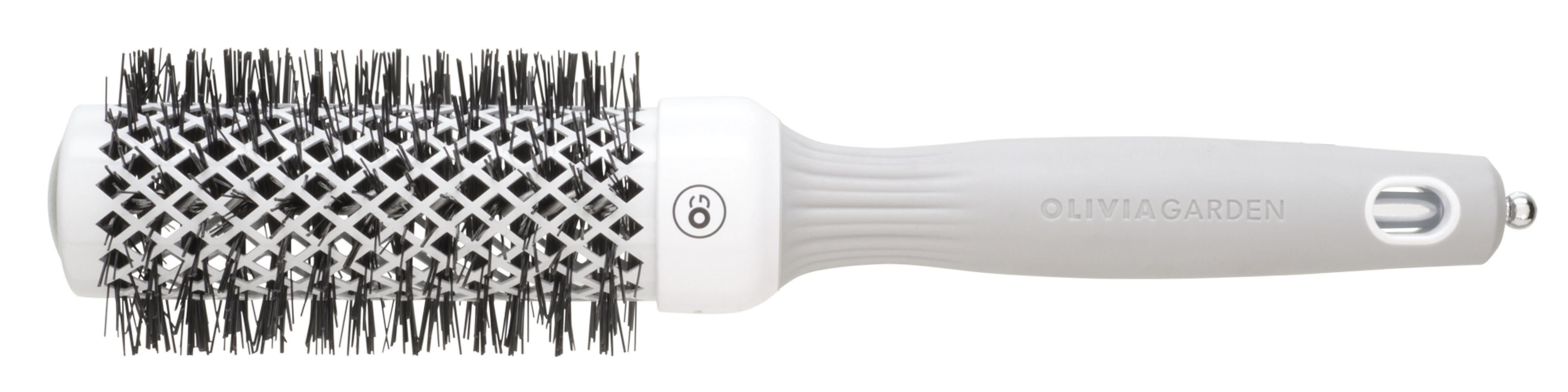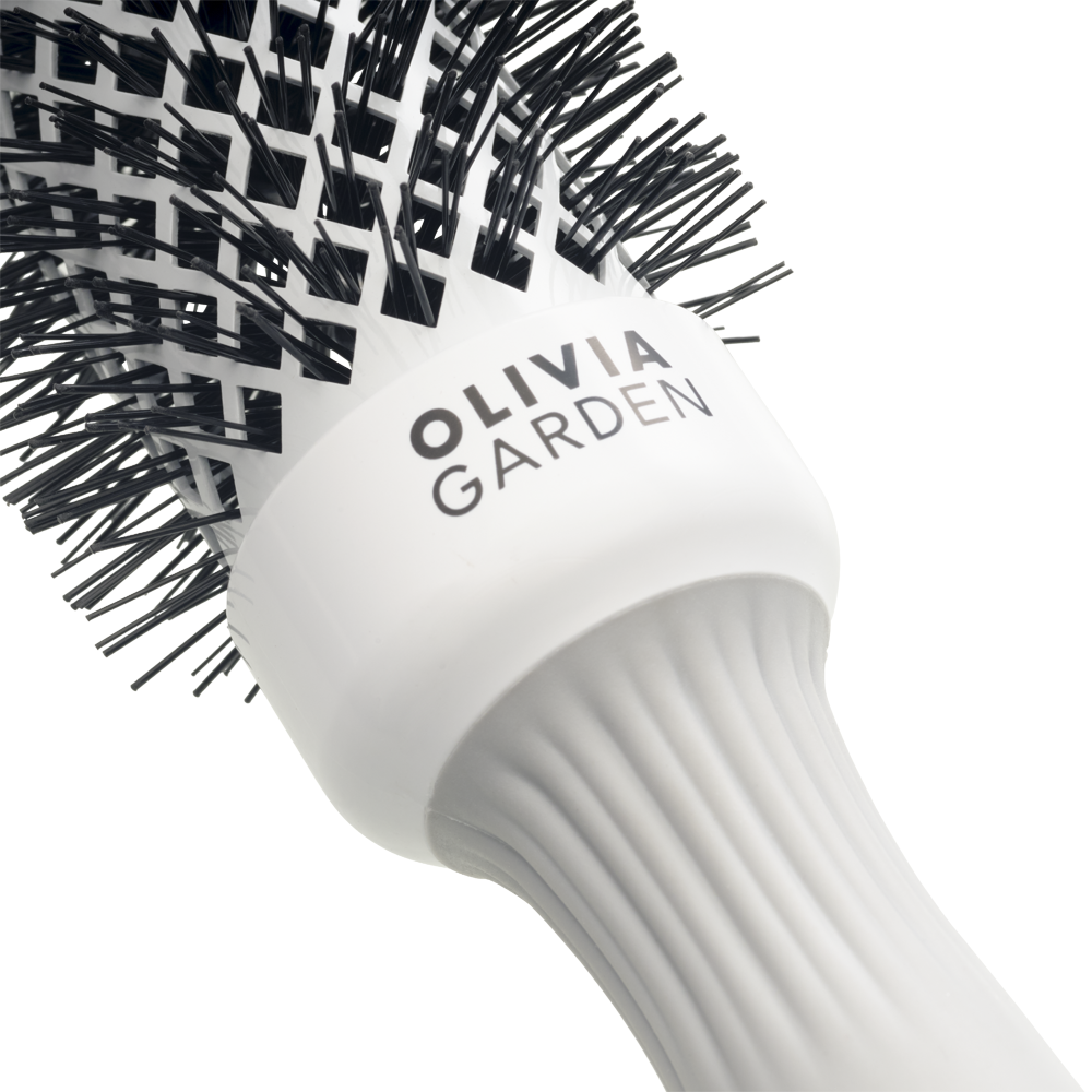 Завдяки напиленню іонізації на керамічному покритті термобрашинга Olivia Garden Ceramic + ion, під час укладки закриваються кутикули кожного волоска, що захищає волосся від пересихання. Більш того, взаємодія з іонізованим покриттям сприяє зволоженню волосся, воно стає більш доглянутим, набуває блиску і здорового сяйва.