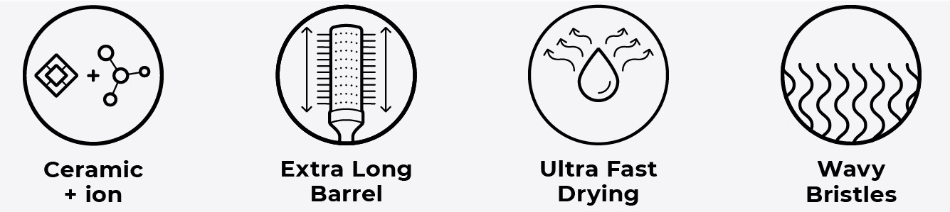 Подовжена бочка дозволяє укладати великі ділянки волосся. У порівнянні з бочками звичайного розміру, час сушки скорочується до 25%. Крім того, великі отвори для повітря забезпечують кращий повітряний потік - для більш швидкого і ефективного моделювання.