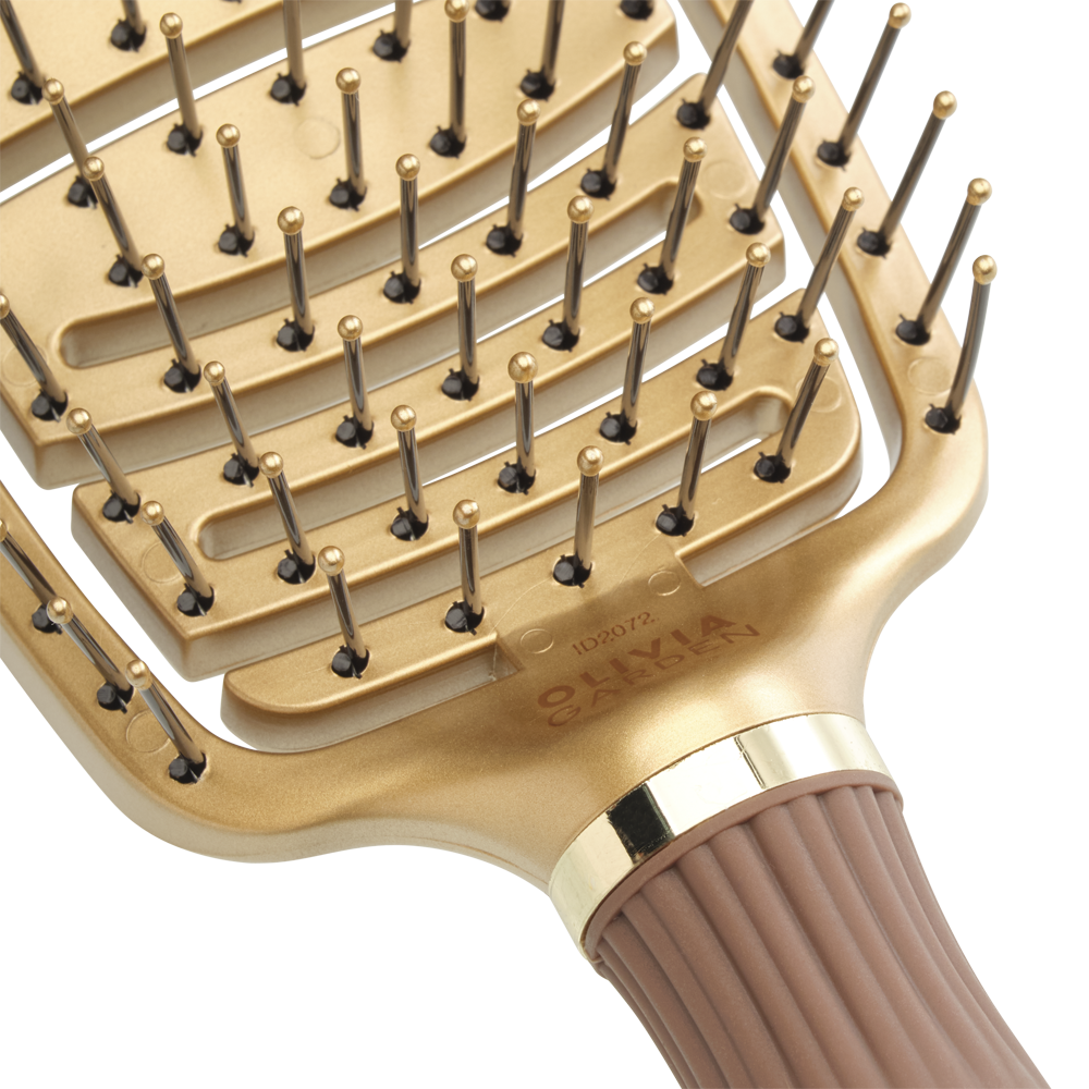 Має відкритий, дуже гнучкий корпус, який повторює форму шкіри голови, та нейлонові щетинки, які розплутують вологе або сухе волосся, не смикаючи його. Розроблена для повного контролю та комфорту, вона ідеально підходить для щоденного розчісування всіх типів волосся.