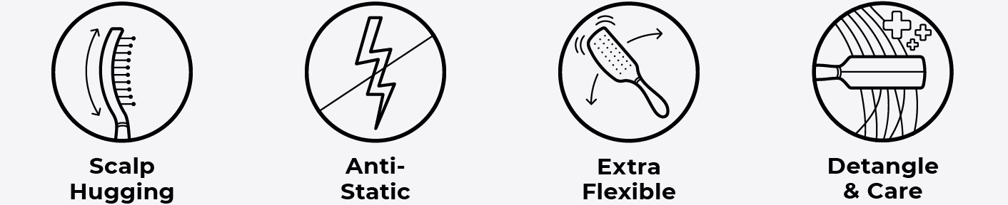 Гнучкі щетинки підлаштовуються під форму голови і змінюють свій напрямок з кожним рухом, що забезпечує м'яке розчісування і дбайливий масаж голови.