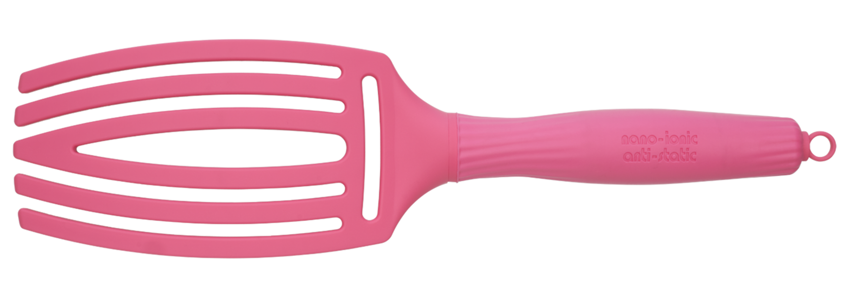 На окрему увагу заслуговує ергономічна ручка щітки, що повторює вигини руки. Завдяки такому дизайну, щіткою зручно користуватися тривалий час. В кінчик ручки вмонтовано інструмент для створення проділу або відділення пасом.