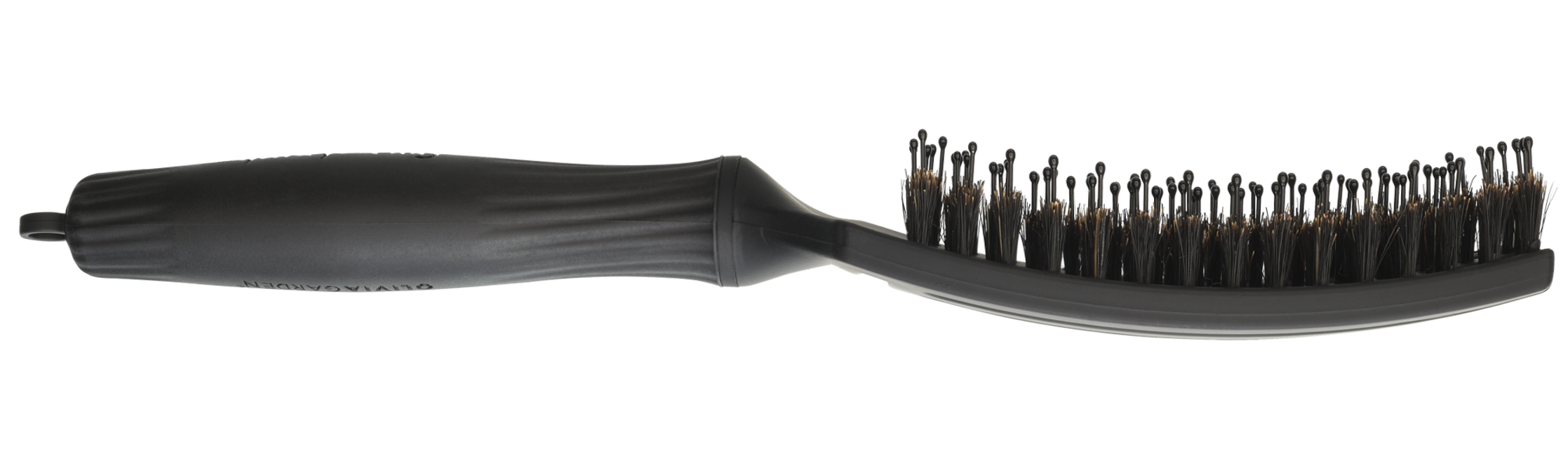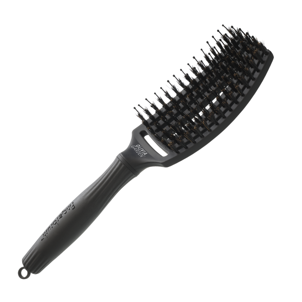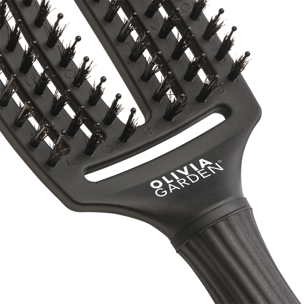 Гнучкі щетинки, схожі на пальці, делікатно розділяють вузлики, зменшуючи натяг і ламкість для безболісного розчісування. Щетина з кабана та нейлону додає блиску, контролює пухнастість і робить волосся гладеньким і полірованим. Вигнута форма повторює рухи шкіри голови для легкого розчісування. Ідеально підходить для довгого волосся та волосся середньої довжини – рекомендується для сухого волосся.