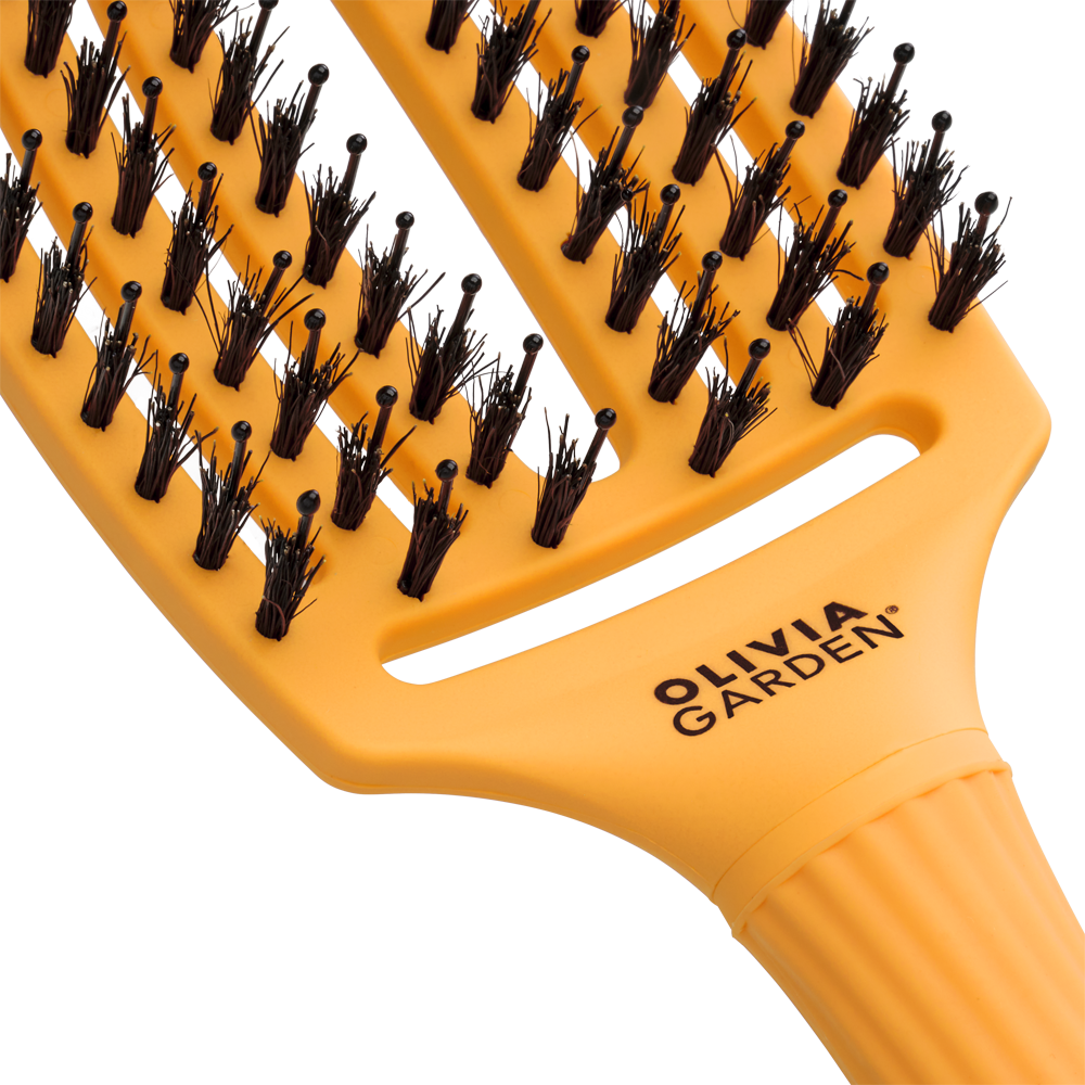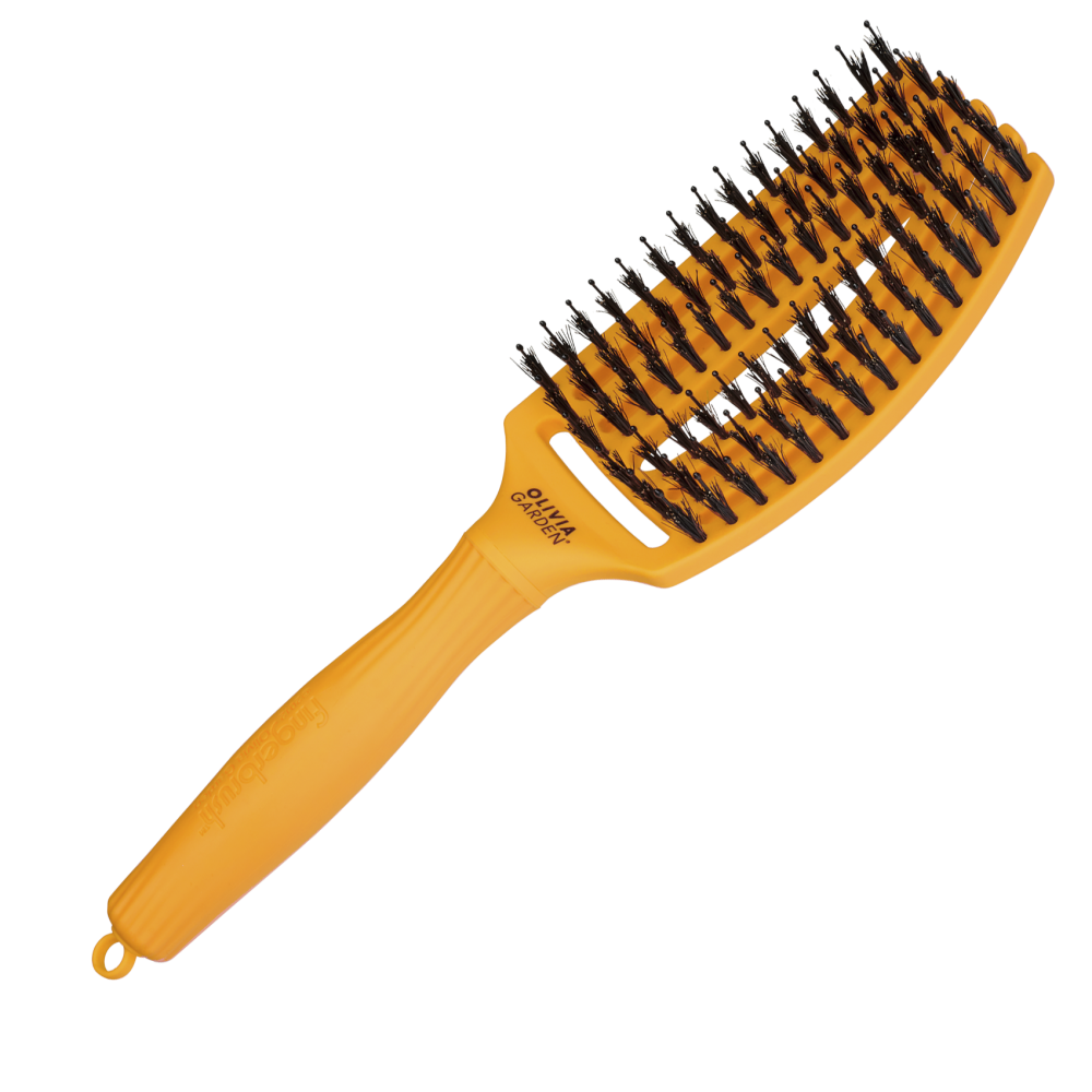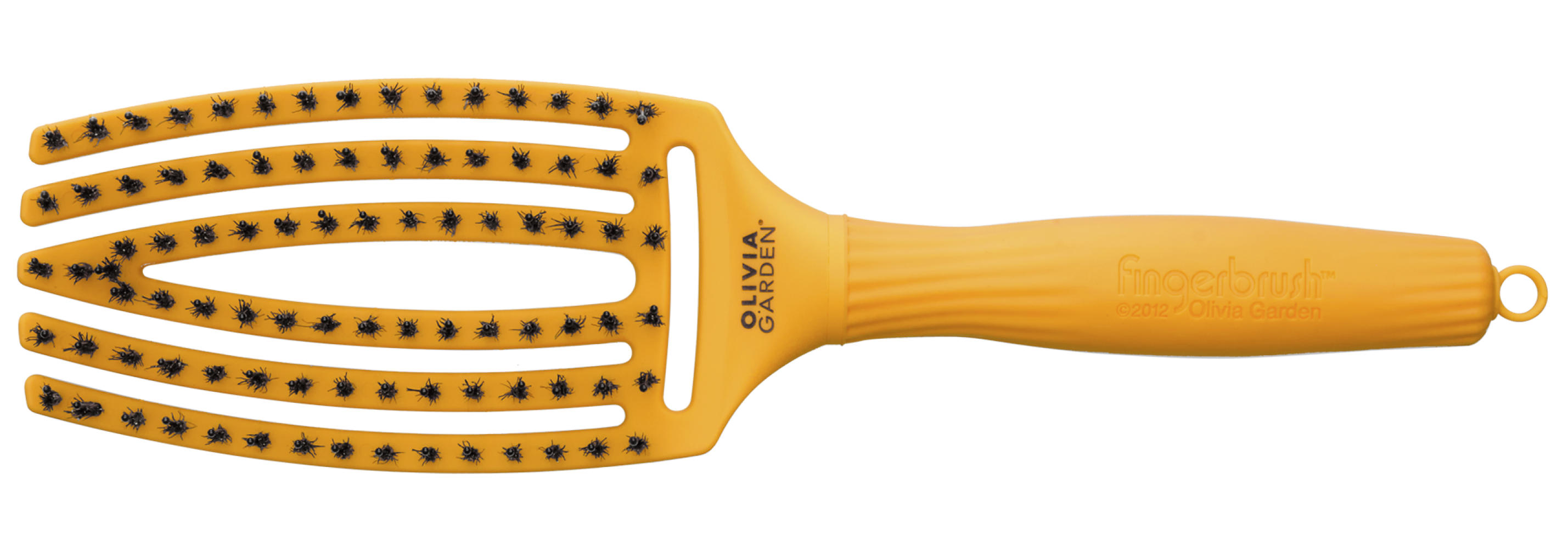 Щітка Olivia Garden Yellow Sunshine (ID1836) має вигнуту форму, що повторює вигин голови.