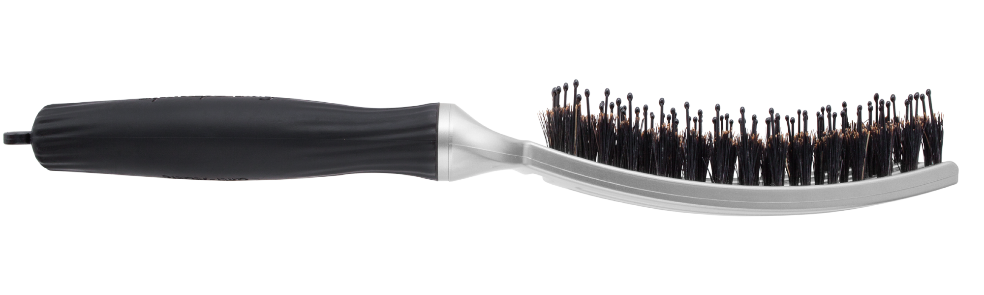 Щітка Olivia Garden Fingerbrush Care Iconic Boar Nylon має вигнуту форму, що повторює вигин голови.