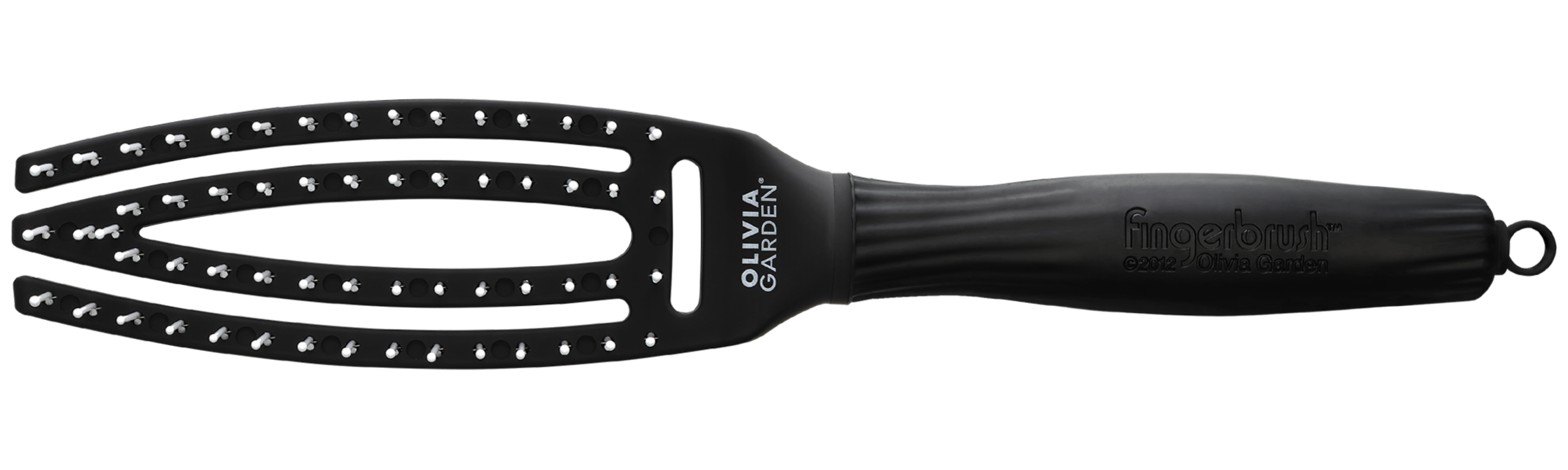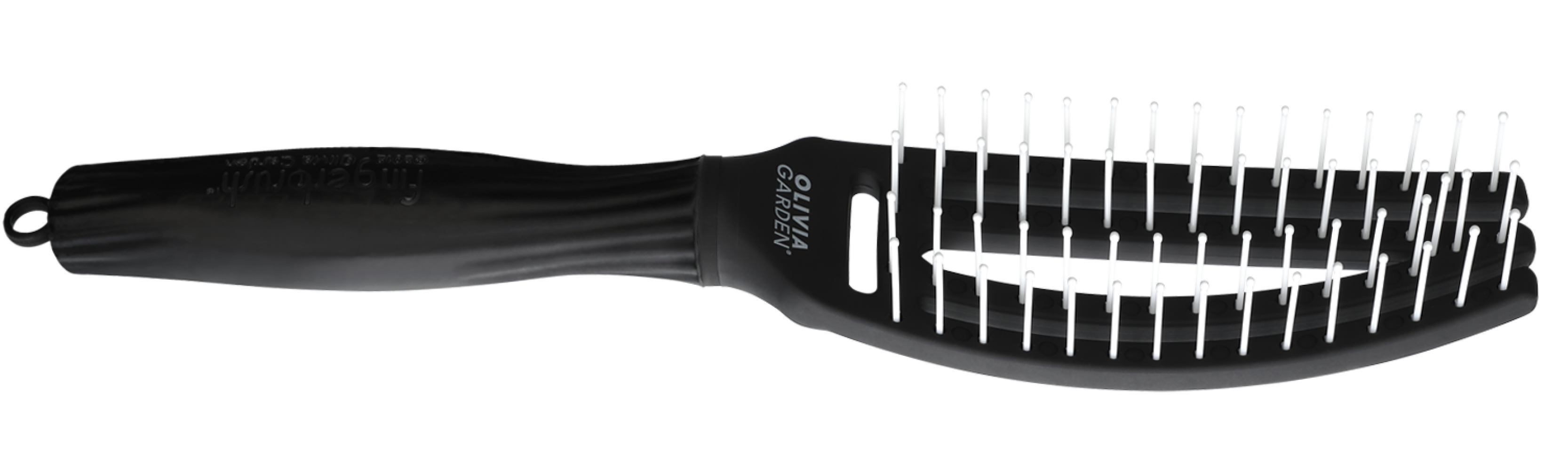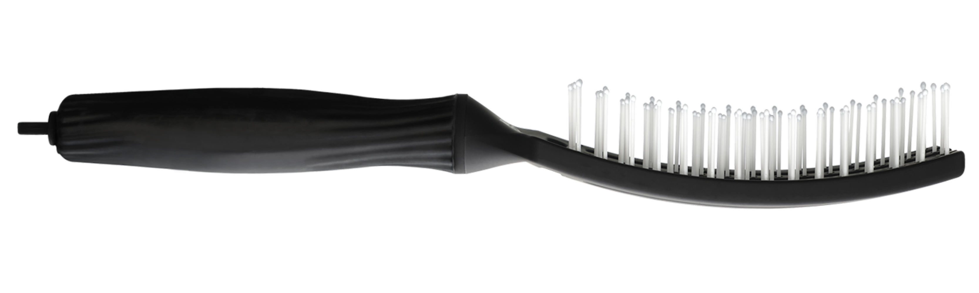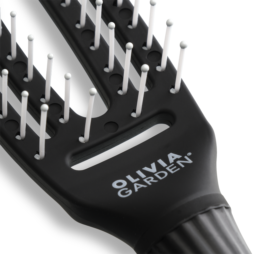 Щітка для волосся Olivia Garden ID1392 в чорному кольорі має вигнуту форму, що повторює вигин голови.